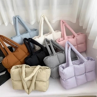 Sıcak satış moda kış yastıklı kabarık çanta hafif yumuşak pamuk Puffer çanta kadın kapitone Tote çanta bayanlar için