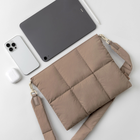 2024 sıcak satış manyetik naylon Puffer Crossbody bilgisayar çantası yumuşak pamuk kapitone dizüstü bilgisayar için kılıf çanta omuz askısı ile
