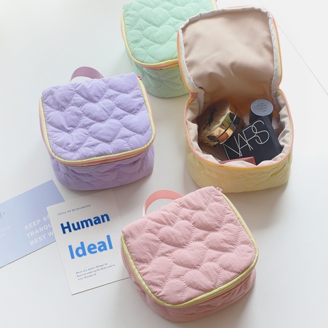 K-tarzı büyük kapasiteli kabarık makyaj çantası moda taşınabilir Satchel kapitone seyahat kozmetik durumda Puffer makyaj fermuarlı çanta
