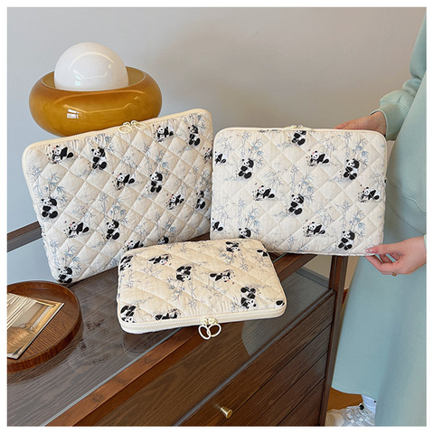 Özel boyutta Logo sevimli pamuk kapitone ZipperShockproof Laptop çantası Tablet koruma kapitone dizüstü bilgisayar için kılıf çanta