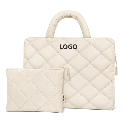 Toptan fabrika özel darbeye Puffer Laptop çantası yumuşak pamuk naylon kapitone bilgisayar kol çantası