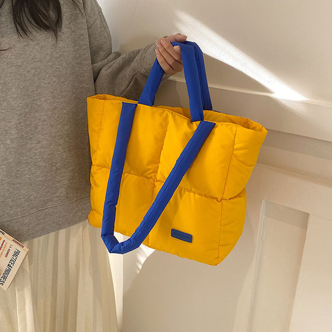 الأكثر مبيعًا حقيبة يد منتفخة أنيقة شتوية مبطنة خفيفة الوزن من القطن الناعم حقيبة حمل نسائية مبطنة للسيدات