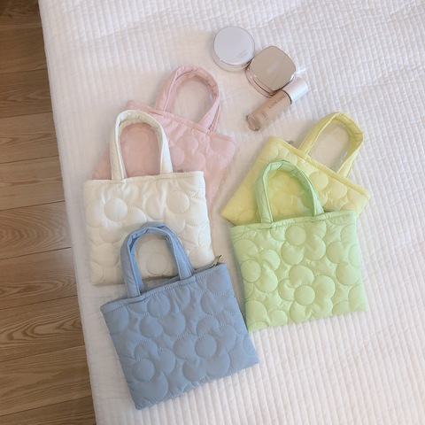 حقيبة يد محمولة بتصميم جديد من القطن الناعم بسعة كبيرة مبطن من النايلون حقيبة حمل منفوخة للنساء