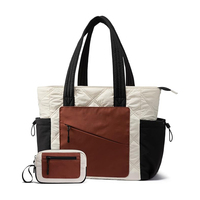 حقيبة حمل عصرية بشعار مخصص من المصنع بسعة كبيرة وخفيفة الوزن للشتاء من النايلون الناعم حقيبة يد مبطنة للسيدات